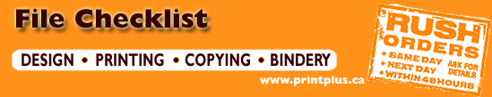 A properly prepared file will save you considerable time and money. The following checklist will help you achieve this objective by minimizing potential file outputting and press printing problems.